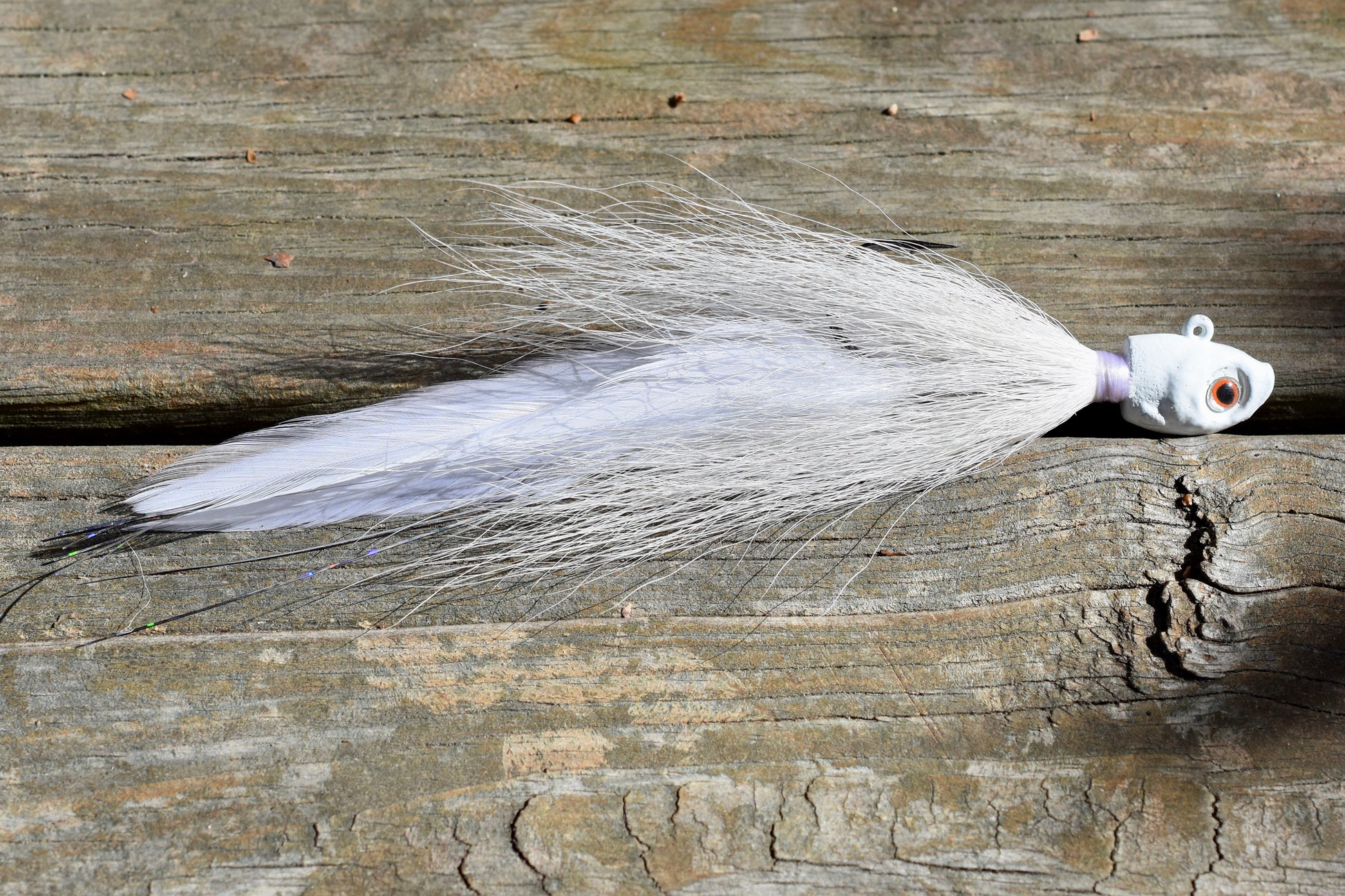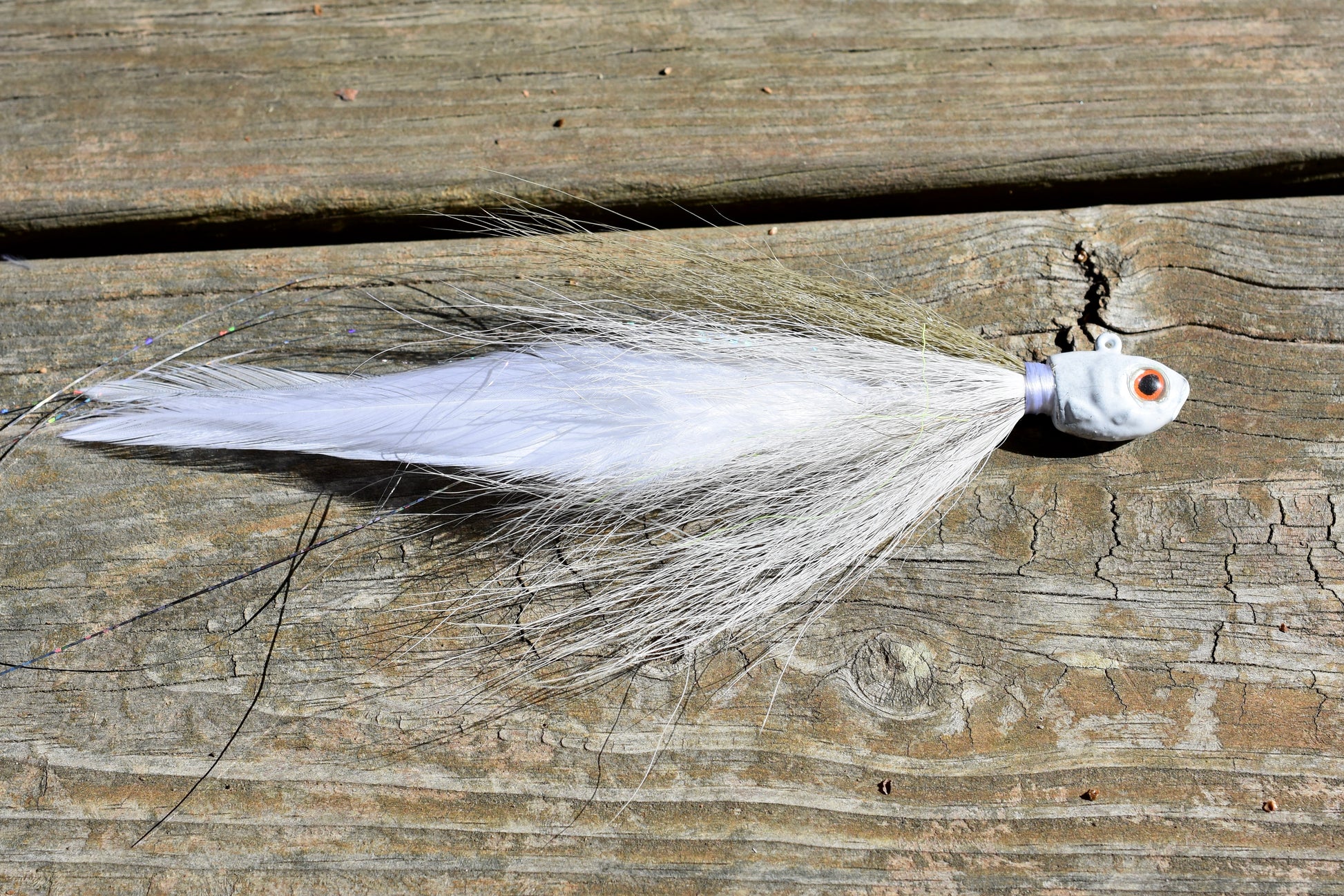 A hand-tied blend of premium saddle feathers, Krystal Flash, and Flashabou creates a lifelike, pulsating tail with just the right amount of shimmer. Complemented by premium ducktail and finished with realistic 3D eyes, the Hawg Jig delivers irresistible realism from every angle.